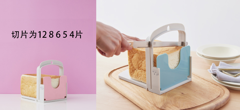 压住吐司面包,用面包切刀沿着沟槽切片。